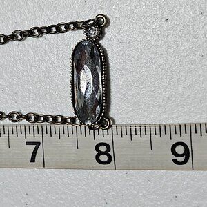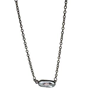 This necklace features a faceted oval crystal pendant set in brass with an adjustable chain. A versatile accessory for elegant and timeless style.