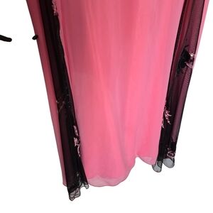 Vintage Elegant Pink Black Satin Chiffon Embroidered Long Nightgown And Robe