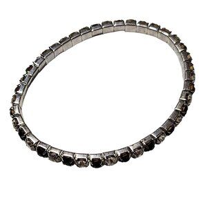 Vintage Elegant Rhinestone Tennis Bracelet Silver Tone Black Clear Stones Women