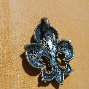 This elegant silver fleur-de-lis pendant necklace adds a touch of sophistication to any outfit. Perfect for any occasion.