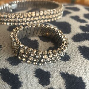 Vintage Elegant Silver Rhinestone Necklace and Bracelet Set