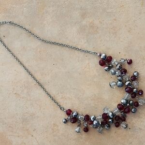 This stunning necklace features a blend of silver and red beads, perfect for adding a touch of elegance to any outfit. The intricate design showcases a beautiful combination of colors, making it a versatile accessory for any occasion. This was my mother's, vintage.