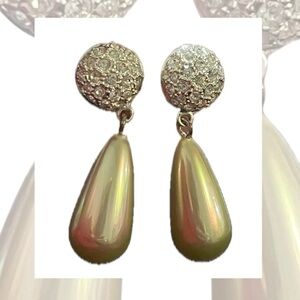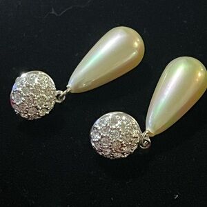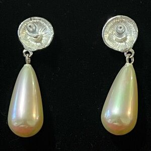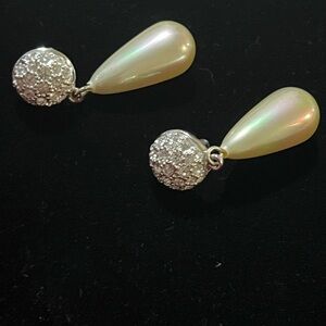 Vintage Elegant Silver-Tone and Cream Drop Earrings