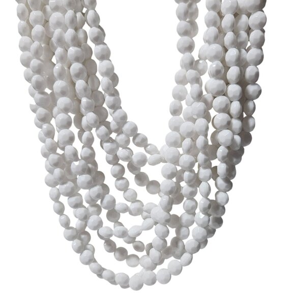 A sophisticated multi-strand necklace crafted from pristine white faceted glass beads, offering timeless elegance and refined design for the discerning accessory collector.