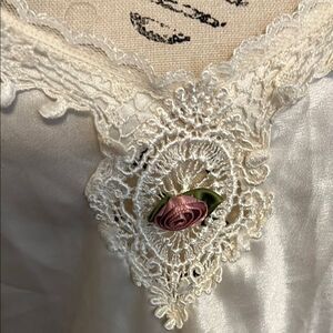 Vintage Elegant White Lace Trim Semi Sheer Chemise Nightgown Romantic Feminine