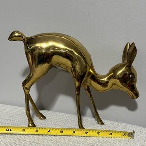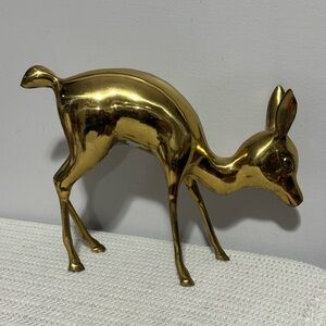 Enhance your home decor with this elegant gold deer sculpture. Its sleek design adds a touch of sophistication to any space.