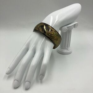 Vintage Elephant Animal Jungle Safari Metal Brass Women's Bangle Bracelet Fashion Costume Jewelry. Bracelet is vintage pre-owned. Please see all photos for visible condition. No original box. Brand unknown. Uncertain of metal type but it appears to be brass based on the inside spots but also could be a combo of metals. It doesn't appear to be painted looks more polished. Props not included.