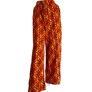 Vintage Elephant Bell Bottom Pants Cropped Top Set Yellow Red READ