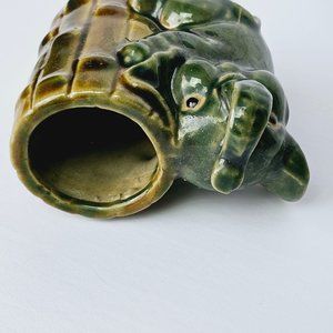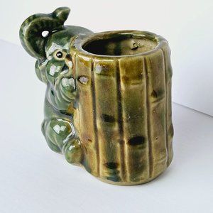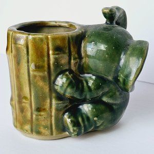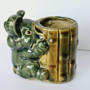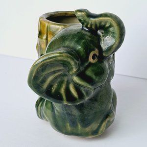 Vintage Elephant Majolica Trunk Up Small Planter, Ceramic, 4.5" T X 4" W