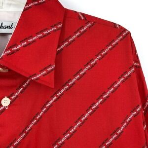 Vintage Elephant Men’s Button Up Shirt Collared Size XL Philadelphia All Over Script Red 100% Cotton