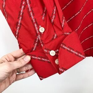 Vintage Elephant Men’s Button Up Shirt Size XL Philadelphia All Over Script Red