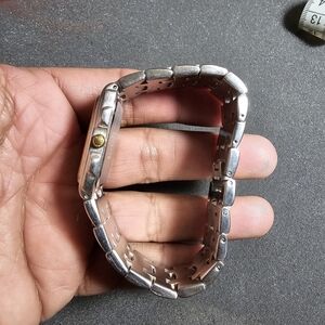 Vintage Elgin Gold Silver Tone Quartz Mens Dress Tank Watch Working FM333-040 shows signs of wear such as light scratches on case band and crystal as well as discoloration of gold tone see pictures for reference