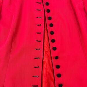 Vintage Eliane Red Button Front Coat Jacket Black Piping Bold Statement 90s