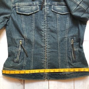 Vintage Elie Tahari Tapered Fitted Blue Denim Jacket Faux Leather Women's Small