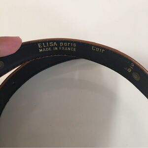 Vintage Elisa Paris Cognac Brown Leather Rectangle-Studded Belt GUC