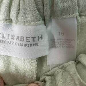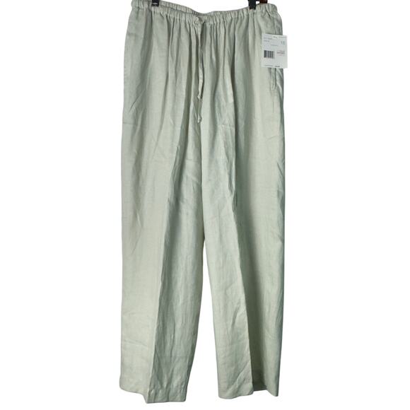 Vintage Elisabeth By Liz Claiborne Tactility Light Sage Green 100% Linen Wide Leg Pull On Pants Size 16 NWT Coastal Vibe