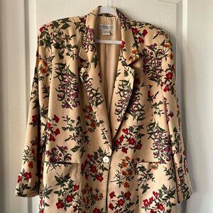 Vintage Elisabeth Floral Print Blazer Jacket in Cream Women's size 18