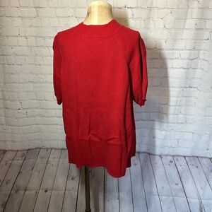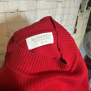 Vintage Elisabeth by Liz Claiborne Petite Red Ribbed Short sleeve Sweater