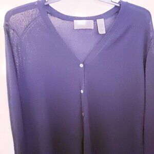 Vintage Elisabeth/Liz Claiborne Navy Blue Sheer Rayon Blend Cardigan 2x EUC