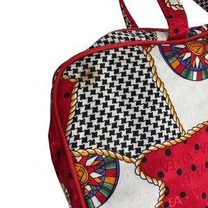 Keywords: Travel bag, patchwork bag, Elizabeth Arden, red bag, black bag, durable bag, zipper bag, lightweight bag, carry handle, 14 inch bag, polyester bag, made in Taiwan, professional travel, stylish luggage, makeup bag, elizabeth arden makeup bag, elizabeth arden vintage makeup bag