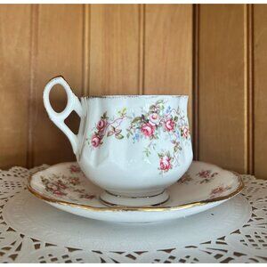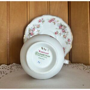 Vintage Elizabethan Rosamund Fine Bone China Footed Teacup Saucer Set Pink Rose