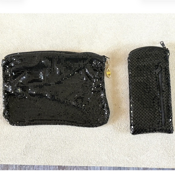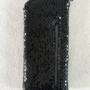 Vintage Elka Black Metal Mesh Zipper Clutch Bag & Black Metal Mesh Eyeglass Holder (unbranded)