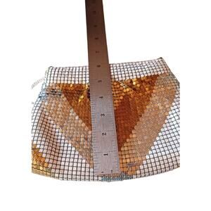 Vintage Elka Metallic Mesh Purse Gold Silver White Disco Clutch Bag 8x6 inches
