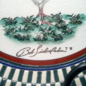 Hand-painted vintage decorative plate featuring a vibrant rooster design. Intended for decorative purposes only. Measures 10 inches in diameter.