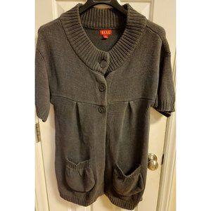 Vintage Elle Sweater 3 Button Short Sleeve 2 Large Front Pockets Gray Size Large