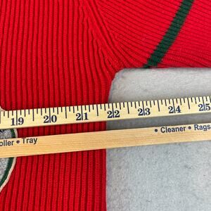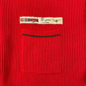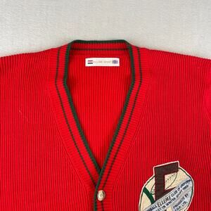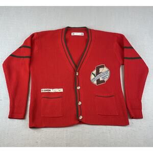 The Vintage Elleme Sport Varsity Women's Size M Cardigan Sweater in Red is a stylish and classic piece perfect for casual occasions. Made of acrylic knit fabric, this long sleeve sweater features a V-neckline and a regular fit, suitable for the winter, fall, and spring seasons. With its vintage style, this cardigan is a versatile addition to any woman's wardrobe, easy to care for with machine washable instructions.
