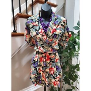 Vintage Ellen Ashley Tropical Floral Rayon Short Sleeve Retro Romper Size 4