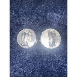 These vintage Ellen Designs earrings are a stunning addition to any jewelry collection. The silver plated clip-on earrings feature a beautiful flower shape with clear white cabochon stones. The earrings have a stud style closure and are perfect for those who love vintage and antique jewelry. The earrings are a great gift for someone special or can be worn to add a touch of elegance to any outfit.