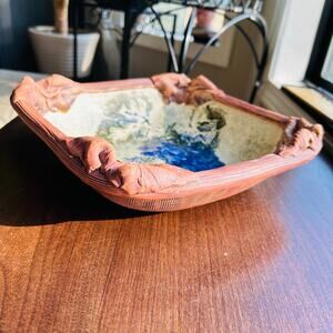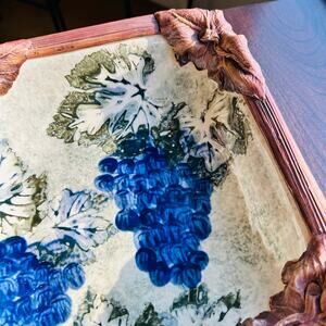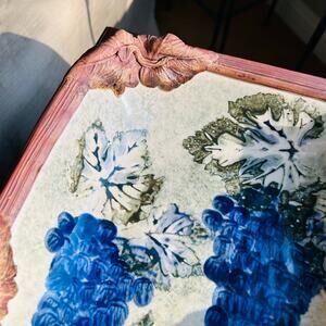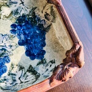 Vintage Ellen Evans Terrafirma Studio Art Pottery Platter w/ Grape & Leaf Relief