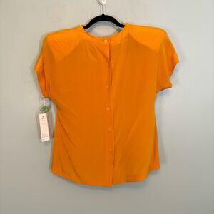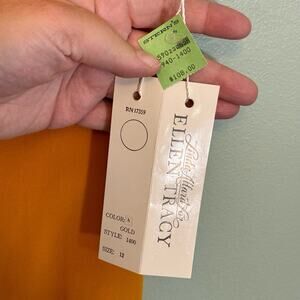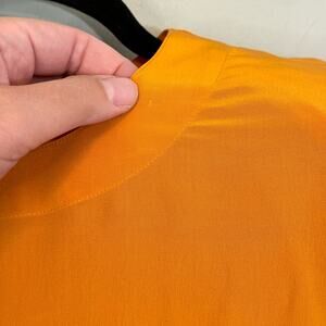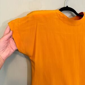 Vintage Ellen Tracy Top Womens 12 Golden Yellow Silk Blouse Button Back Shoulder Pads - NEW WITH TAG