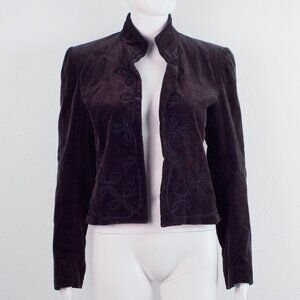 Vintage Ellen Tracy Velvet Embroidered Jacket 80s Brown Size 10