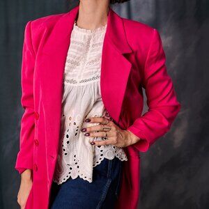 Vintage Ellen Tracy for Linda Allard 80's Hot Pink 100% Silk Blazer Jacket Size