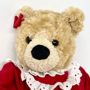 Vintage Ellie Bear Lands End Curly Hair Red Holiday Nightgown Bow Jointed 14"
