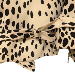 Features: Zip front closure, animal print, sleeveless, adjustable tie-back, lined