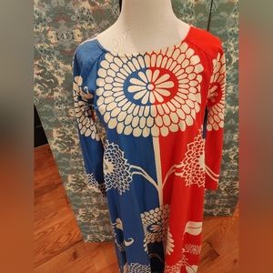 Eyecatching 70s cotton maxi dress. In very good vintage condition with some slight darkening to the white in areas but no stains.
