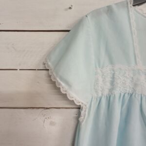 Vintage Elsie of Miami Nightgown Blue Women's Size Large Lace Embroidered Short Sleeve Lightweight. Please check measurements. Approximate measurements are laying flat armpit to armpit 21" and length from shoulder to hem 38". Condition is pre owned, used, good condition.