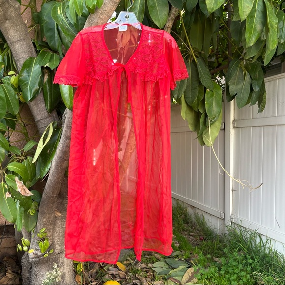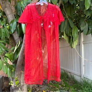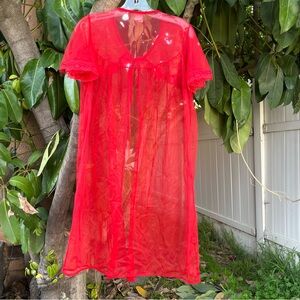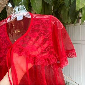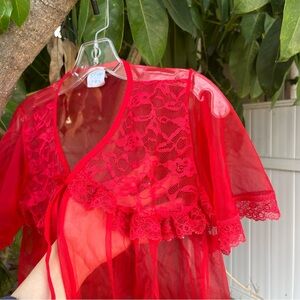 Vintage Elsie of Miami Red Sheer Babydoll Peignoir Robe 🌹.