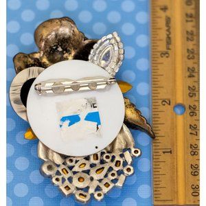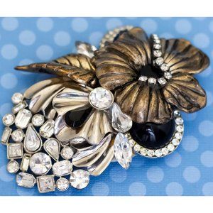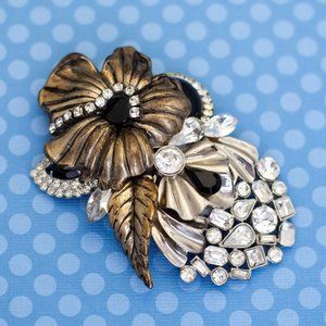 Vintage Elven Leaf Floral Bronze/Silver Tone Intricate Brooch