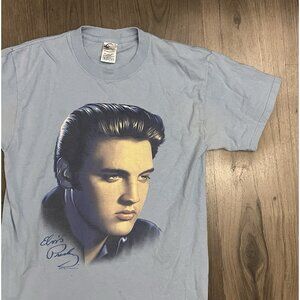 Vintage Elvis T Shirt Medium Blue Y2k Presley Music Rock n Roll Band - WEAR