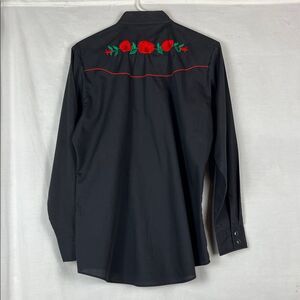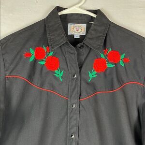 Vintage Ely Country Charmers Embroidered Black and Red Roses Cowgirl Pearl Snap