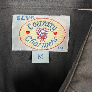 This is a classic vintage Ely Country Charmers embroidered black and red roses cowgirl pearl snap shirt! Ely Country Charmers is the sister brand to Ely Cattleman, designed for women. It is a size m. Pit to pit is 21 inches and shoulder to bottom hem is 27 inches. There are some imperfections on some of the fabric, see pictures.