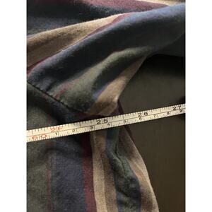 Channel classic Western style with this vintage Ely Plains snap-button shirt! Featuring a bold multicolor vertical stripe pattern in deep blues, burgundy, and beige, this shirt is a standout. Designed with pearl snap buttons, pointed yokes, and dual chest pockets with snap closures, it’s a timeless cowboy-inspired look.
