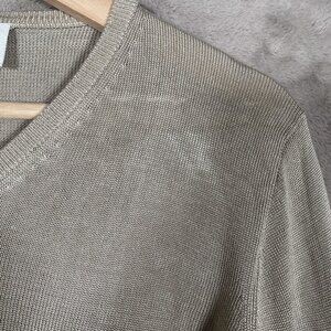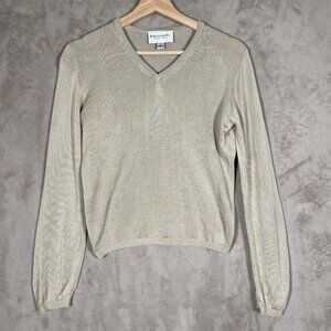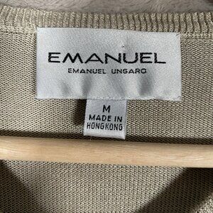 Vintage Emanuel Ungaro 100% Silk Knit Long Sleeve V-Neck Sweater in Size Medium. Color is a shiny sand.