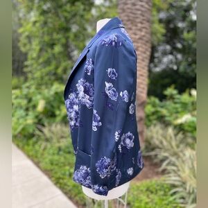 Elevate your style with this elegant floral blue blazer. Perfect for any occasion, this jacket adds a touch of sophistication to your wardrobe.