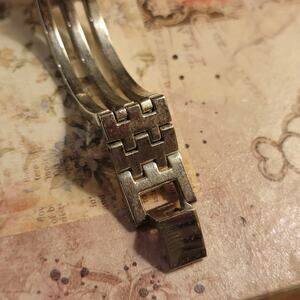 Refined and timeless, this vintage Embassy by Gruen women’s watch showcases elegant design with understated sophistication. It features a slim rectangular dial highlighted by gold-tone accents and a clean, minimalist layout that emphasizes classic style. The silver-tone case is complemented by a distinctive two-tone bracelet, combining polished curved gold-tone bars layered over a traditional silver link band for added visual interest and a jewelry-like finish. Powered by a reliable quartz movement, the watch offers accurate, low-maintenance timekeeping suited for everyday or dress wear. Likely dating to the early 2000s, this piece reflects the era’s focus on graceful proportions and wearable elegance. Embassy by Gruen watches are well regarded for their dependable construction and refined aesthetic, making this timepiece a desirable option for collectors or anyone seeking a polished accessory with lasting appeal. Battery included and ready to wear.