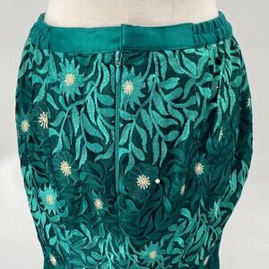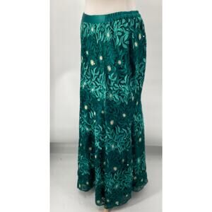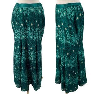 Vintage Embellished Maxi Skirt Mermaid Silhouette Lace Embroidery Teal Green